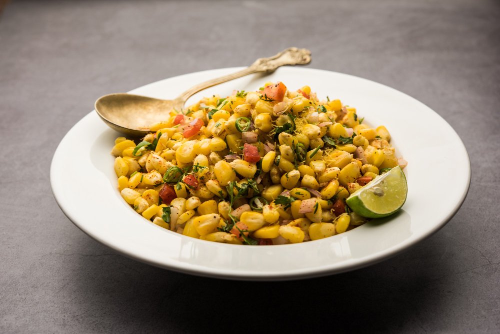 Sweet corn, potatoes pomegranate, crispy chickpea flour, tamarind chutney and mint chutney